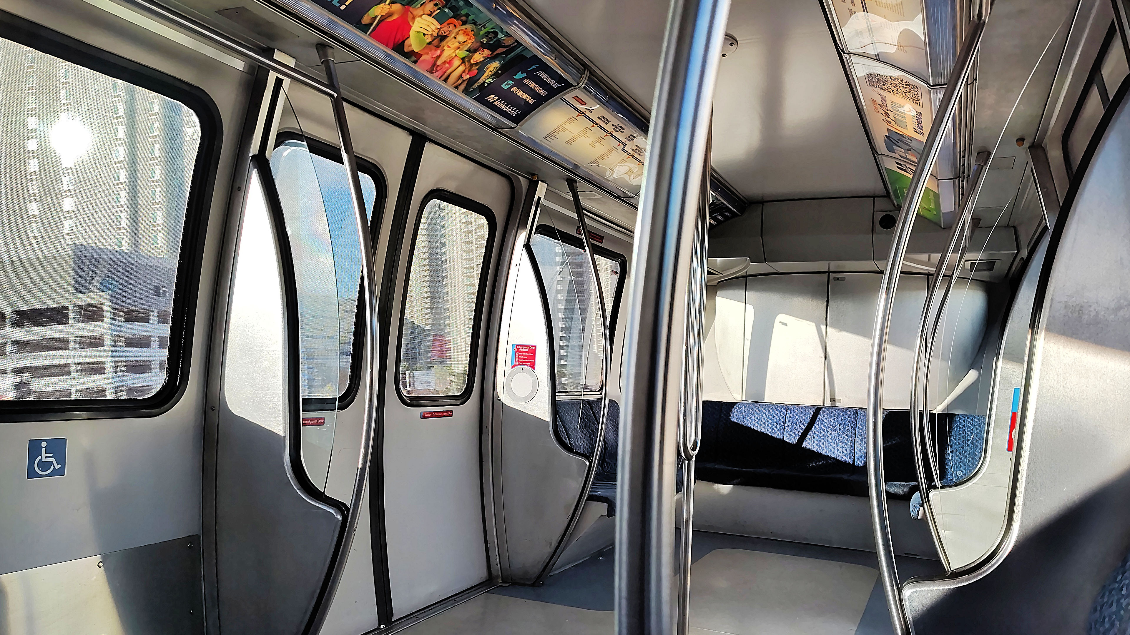 Above is a photo of the empty interior/cabin of a Las Vegas Monorail Train on January 5, 2026 during CES 2026. Photo by David Aughinbaugh II for CircuitRoute/NavFile.