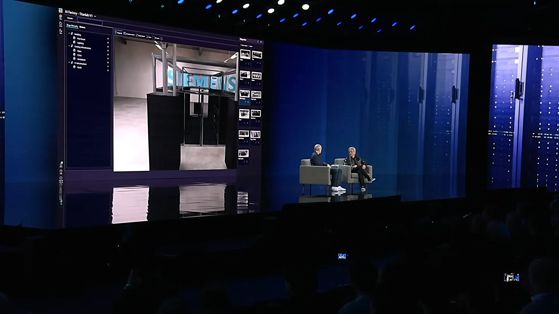 Above: a photo of Jensen Huang and Roland Busch discussing Siemens and NVIDIA's partnership with Digital Twins at CES 2026. Photo from the Siemens Keynote video on YouTube. Used under the fair use provision.